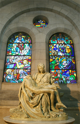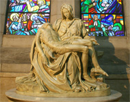 This is a replica of Michelangelo's La Pieta. It is a symbol for the Affinity of the Filipino people to Jesus and Mary's sacrificial love for mankind.